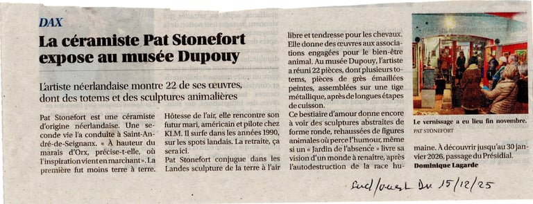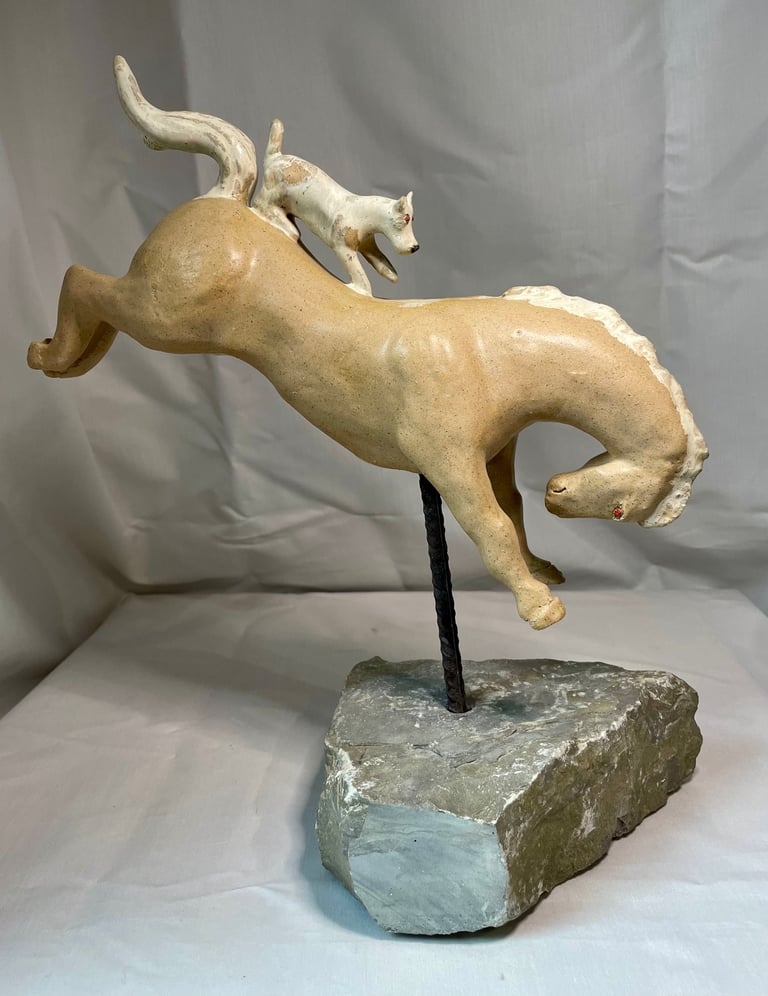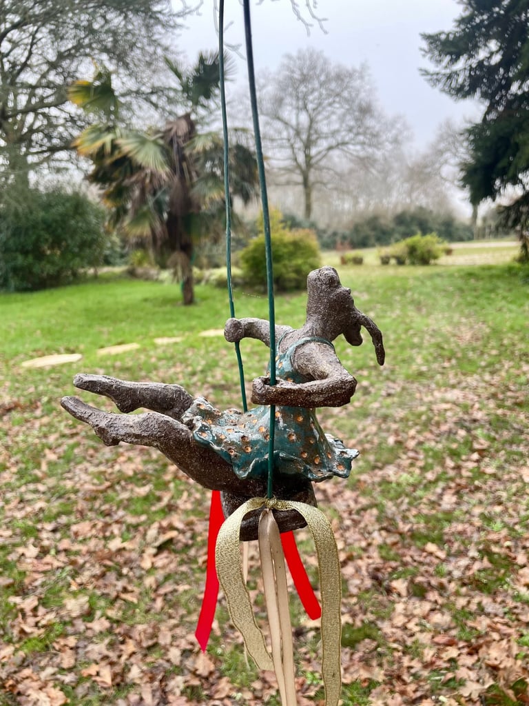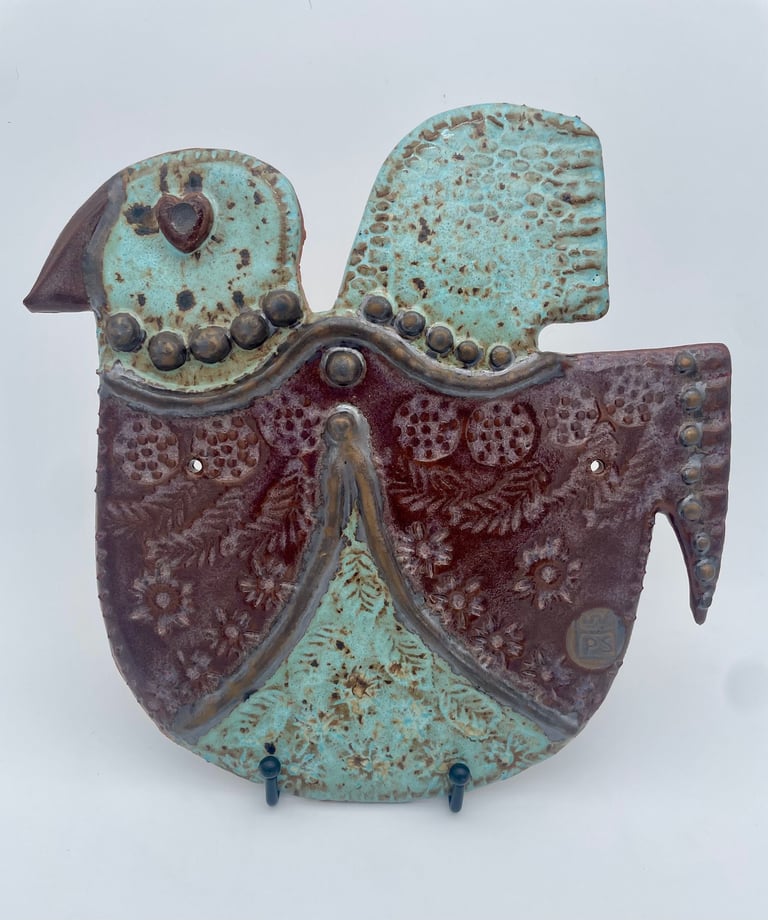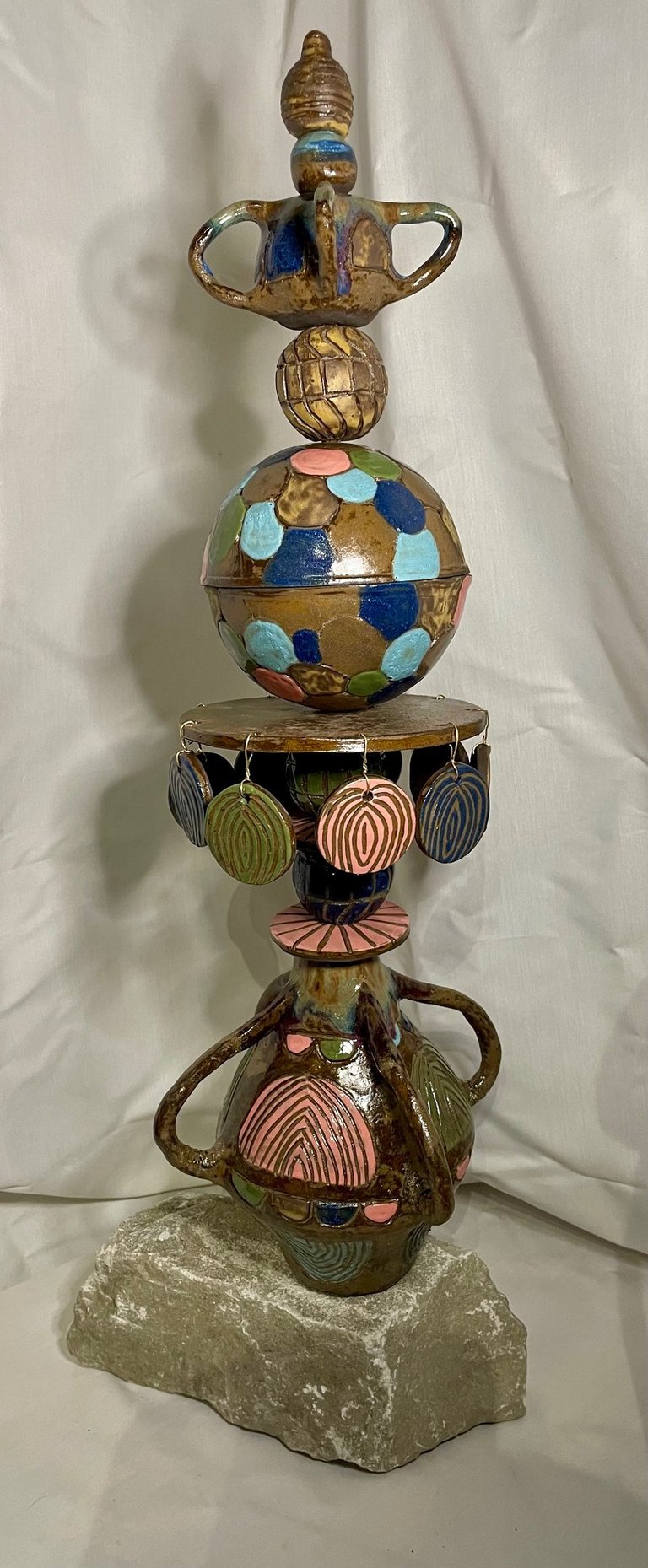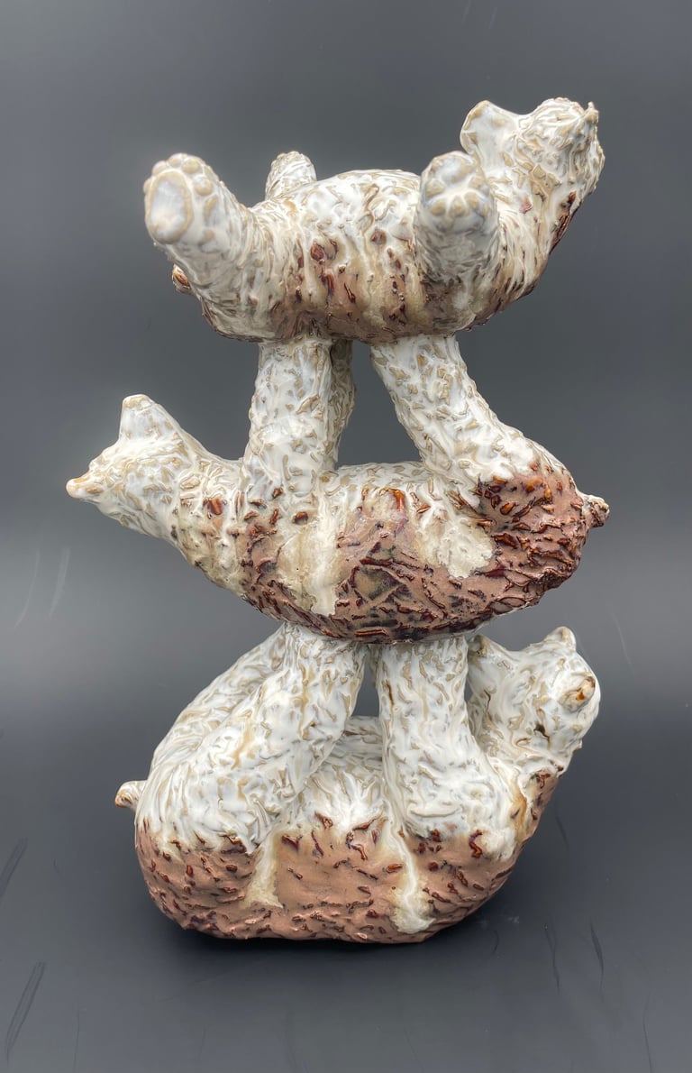 Totems en céramique, sculptures, oiseaux et poissons fantaisie